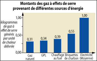 Utilisez les matériaux de construction les plus appropriés pour votre maison, selon le climat. Employez, si possible, une technologie pour utiliser l’énergie solaire. Si ce n'est pas possible, les sources d'énergie qui ont le moins d’impact sur l’effet de serre, sont le gaz naturel et le LPG.